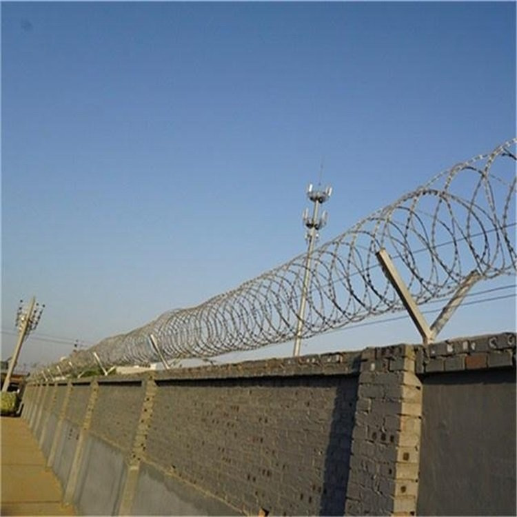 第一種,我們可以采用角鐵來加以固定,根據(jù)刀刺網(wǎng)的劵徑來決定角鐵的高度,一般情況是每隔3米一個支撐角鐵,直接插入圍墻里面,然后加以固定,再把刀刺網(wǎng)安裝上去,在中間拉上3-4根鐵絲,卡子固定上即可。