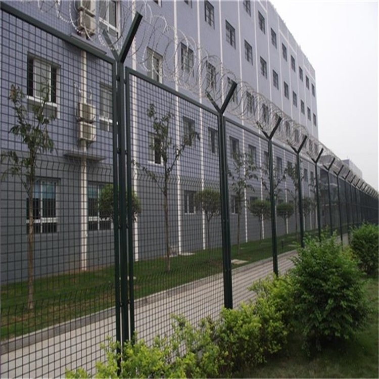 監(jiān)獄護(hù)欄網(wǎng) 監(jiān)獄圍網(wǎng)的常見(jiàn)規(guī)格:網(wǎng)孔:50mmx100mm, 50nmx20Ommn。 邊框:20x30mm, 30x40mm網(wǎng)片中帶有q型加強(qiáng)筋,可大大增強(qiáng)圍網(wǎng)的樹(shù)*沖擊力。立枉為60x60m的矩形鋼,頂端焊有y型支架。連接方式:主要使用鍍鋅材質(zhì)或不銹鋼連接件連接。