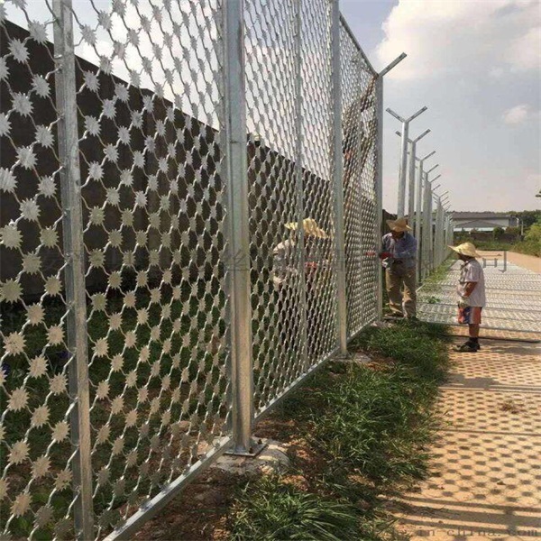 1.梅花刺隔離網連接、緊固件應采用防盜專用螺栓(螺母)加彈簧墊,安裝固定后無專用工具無法拆卸,安裝配件均采用熱鍍鋅處理