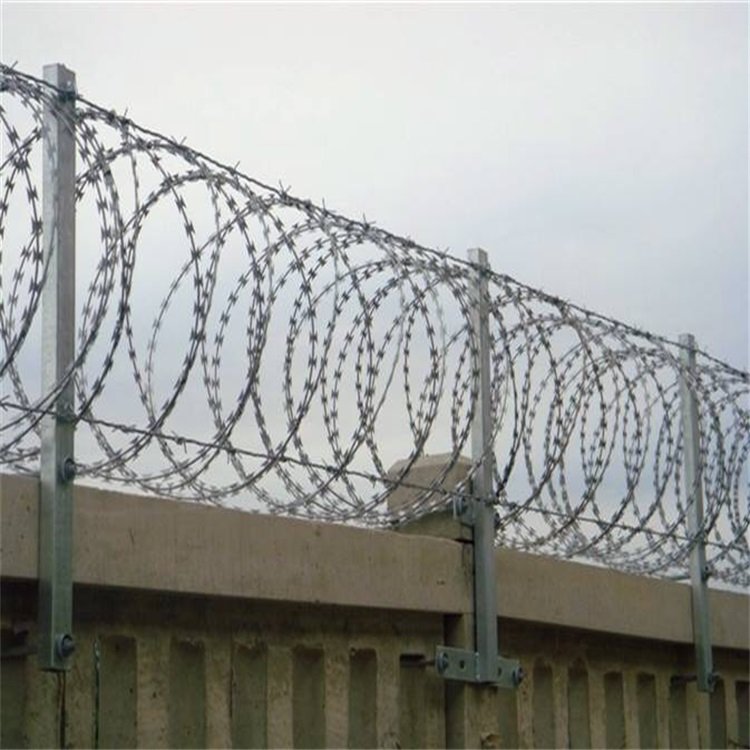 1安裝刀片刺繩在圍墻上,要有配備的支架來(lái)支撐刀片刺網(wǎng),這樣安裝出來(lái)的效果美觀。首先是在圍墻上打眼用螺絲穩(wěn)固刀片刺網(wǎng)立柱,一般情況是每隔3米一個(gè)支撐柱子
