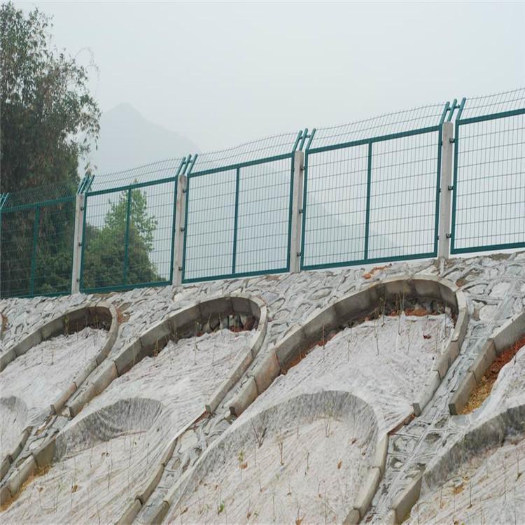 鐵路護(hù)欄網(wǎng)的類型大致分為:雙邊絲護(hù)欄,直框護(hù)欄,頂部30°折彎的護(hù)欄。一般鐵路線路兩側(cè)為了阻止落石或者阻擋外界的任何動(dòng)物的時(shí)候會(huì)選擇雙邊絲護(hù)欄網(wǎng)作為隔離網(wǎng)。鐵路鐵軌兩側(cè)會(huì)使用直框護(hù)欄或者加折彎的護(hù)欄作為防護(hù)網(wǎng)。但是作為鐵路防護(hù)網(wǎng)的護(hù)欄邊框不能使用普通的20*30的小邊框,而是采購30*40的方管邊框作為護(hù)欄網(wǎng)的邊框與低碳鋼絲焊接。鐵路框架護(hù)欄網(wǎng)安裝尺寸:1.8米*3米,柱中到柱中,鐵路線路上常采用水泥立柱與網(wǎng)片連接。邊框:30*40mm,或者40*40的角鐵。表面處理:浸塑草綠色或者浸塑墨綠色