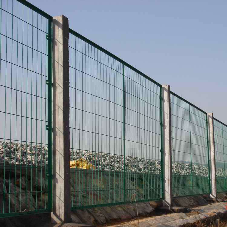 鐵路防護(hù)欄主要用于鐵路封閉、高速公路隔離柵、開(kāi)發(fā)區(qū)圍界、場(chǎng)區(qū)圍網(wǎng),采用立柱采用混凝土洗筑件,工程造價(jià)低,強(qiáng)度高,整體穩(wěn)定好,彩色塑層具有良好的抗腐蝕和裝飾效果,使鐵路護(hù)欄整體和諧、美觀。