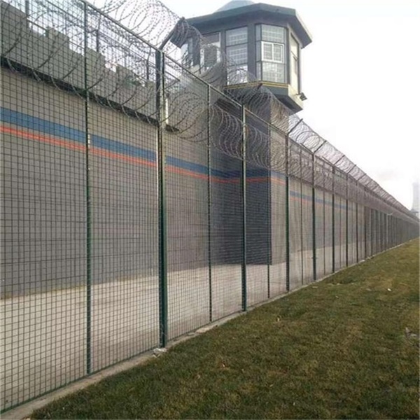 三所一隊建設 是指看守所拘留所 戒毒所 武警中隊的內外墻專用隔離網(wǎng)。 無論是看守所綠色護欄網(wǎng)還是戒毒所設計的隔離網(wǎng),一般分為內監(jiān)墻隔離網(wǎng),外監(jiān)墻隔離網(wǎng),巡邏道專用隔離網(wǎng),巡邏道隔離網(wǎng)是高墻上面安裝防止犯人逃跑設計必須要高架上面安裝刺繩,刺繩可以防止攀爬不容易翻越從而更好地起到更好的防護作用。監(jiān)獄隔離網(wǎng)一般材質是由 低碳鋼絲鋼管連接而成,上面的刺繩一般是不銹鋼刺繩和鍍鋅刺繩防止老化和雨淋使用壽命長,堅固結實,安裝監(jiān)獄隔離網(wǎng)后犯人是逃不掉的。監(jiān)獄隔離網(wǎng)專門為監(jiān)獄等隔離性級別強的場所所設計,外型嚴肅,防護性強,抗剪切。